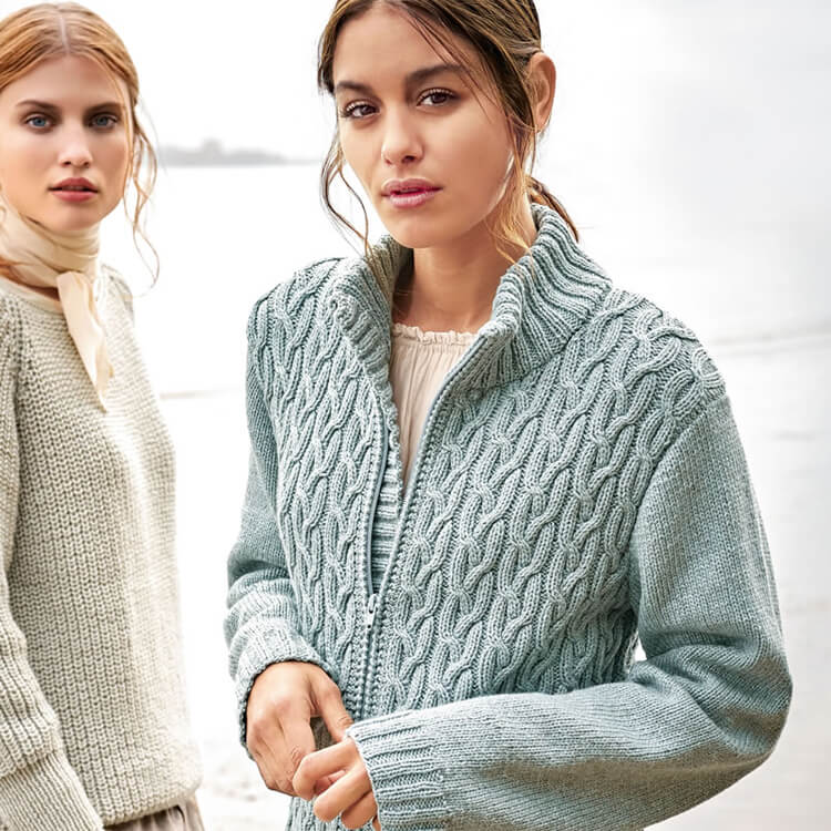 Классический фасон плечевого изделия с застежкой спереди подходит для повседневных, деловых и праздничных образов. Вяжем ажурные и плотные кофты.