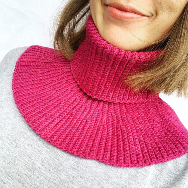 Практичный аксессуар заменяет шарф. Вязаный нагрудник с высокой горловиной удобно надевать, он подходит под разную верхнюю одежду.